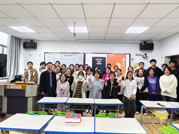 活动前期,班主任组织同学们分组阅读了本期书目—《禹王书》。在分享过程中,各组同学代表依次分享了自己的读书感悟。《禹王书》是金年会官方网站入口甘肃文化发展研究院一级作家冯玉雷的最新力作,该书耗时七年,将作者多年的考古和玉文化学术研究创造性地融入到历史文化小说中。小说以大禹和女娇的爱情故事为主框架,新颖地重述了盘古开天辟地、仓颉造字、夸父逐日等众多上古神话故事和传说。