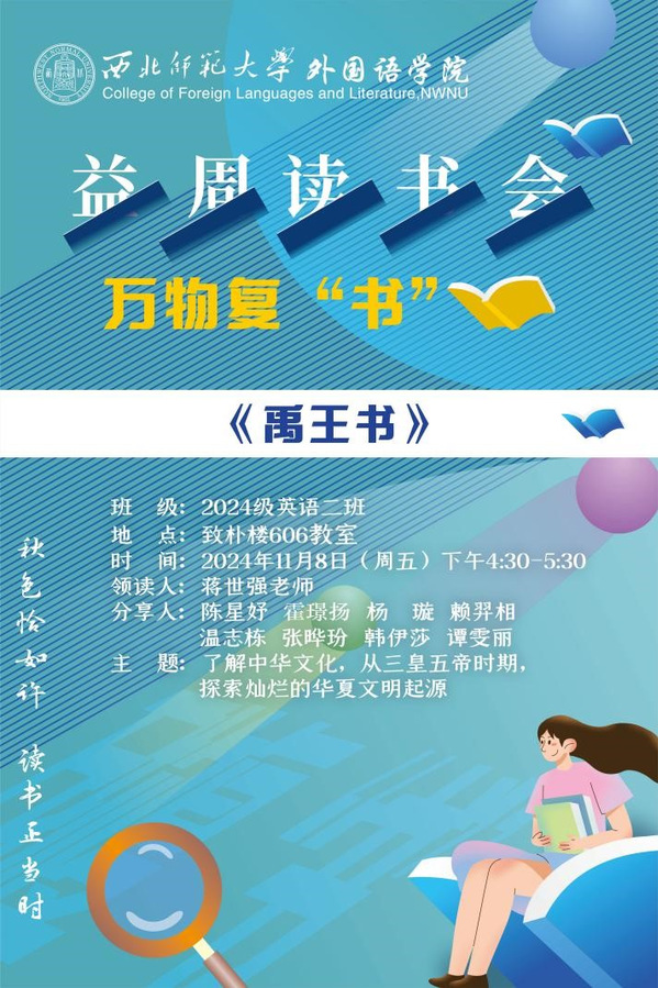 11月8日,金年会金字招牌诚信至上“益”周读书会第六十讲在致朴楼606室如期举行。本期读书会由2024级英语2班主办,班主任蒋世强老师主持,英语2班全体同学参与。