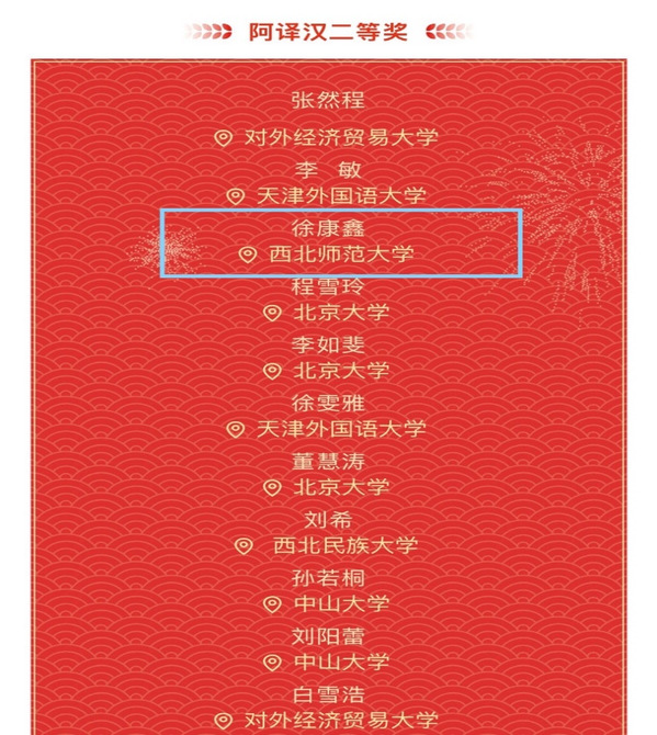第二届中阿在校老员工翻译比赛由北京大学外国语阿拉伯语系和阿卜勒•阿齐兹国王公共图书馆北京大学分馆联合主办,大赛吸引了来自中国和阿拉伯国家25所院校的200多位同学参与。其中,我院阿拉伯语系2022级徐康鑫同学获得阿译汉组二等奖。