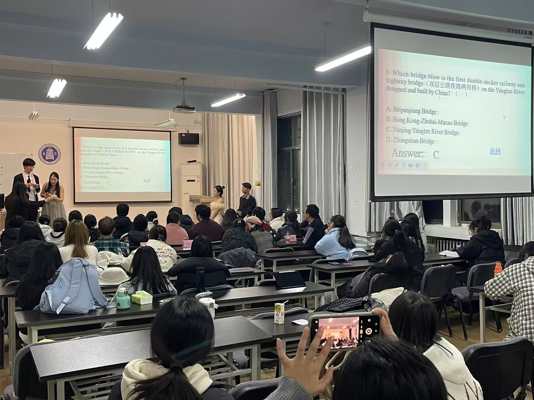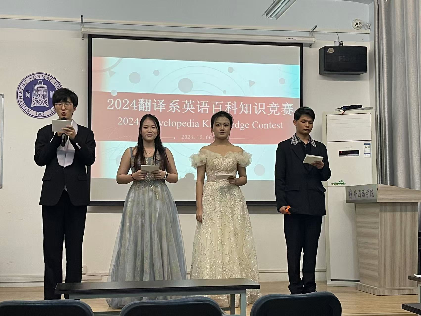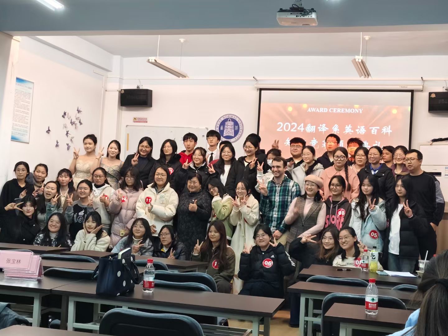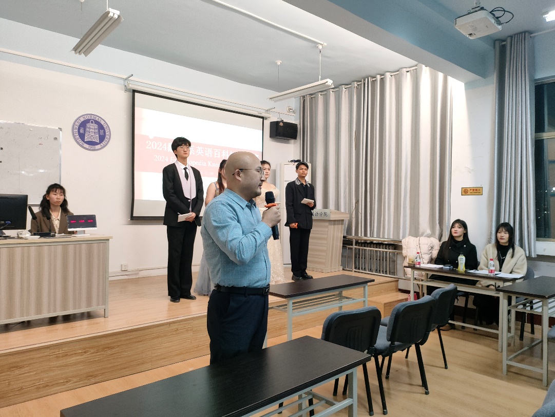 为提高同学们的学习热情,丰富同学们课余生活,翻译系于12月6日晚在致朴楼806室举办了“2024年英语百科知识竞赛”。42名同学组建的14支队伍报名参赛,张宝林副经理及翻译系师生观看了比赛。