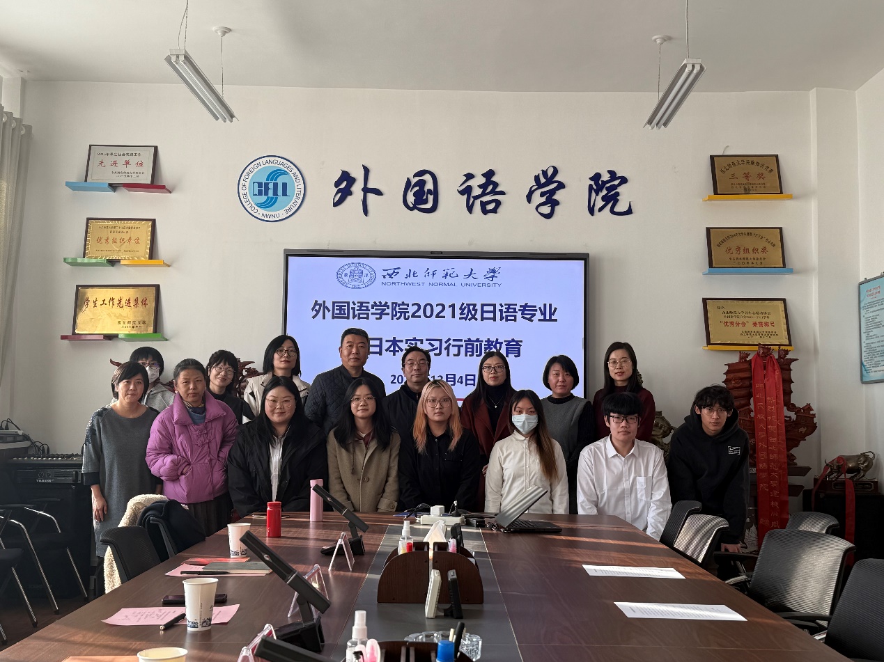 2024年12月4日,金年会jinnian2021级赴日实习员工出境行前教育在致朴楼821会议室举行。国际合作交流处处长田河、党委书记王景、副经理李莉、系主任曹正霞、日语系教师以及赴日本带薪实习的6名员工参会。