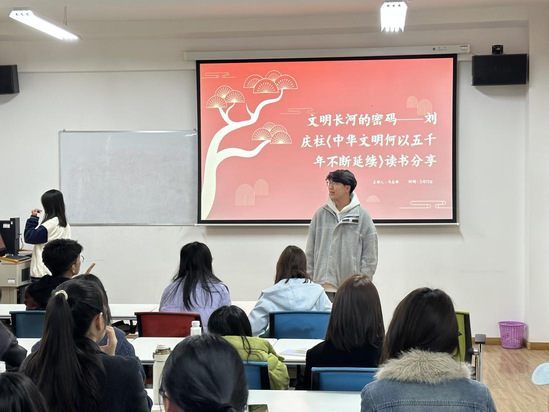 在分享环节中,彭振萱、刘运利、张艳艳等7位同学结合自身阅读感悟,从多元视角深入解读了《中华文明:何以五千年不断裂》,分享了对中华文化的见解。彭振萱同学从“大一统思想”出发,分析了中央集权制度对中华文明延续的积极作用;刘运利同学以“汉字与文化的传承”为切入点,探讨了语言文字在文明延续中的重要作用;张艳艳同学则聚焦“儒家思想”,阐述了“仁政”与“礼治”对中华文明稳定的深远影响。其他同学也分别从农耕文明、家族观念、文化包容性等角度,分享了各自对中华文明的深刻理解。