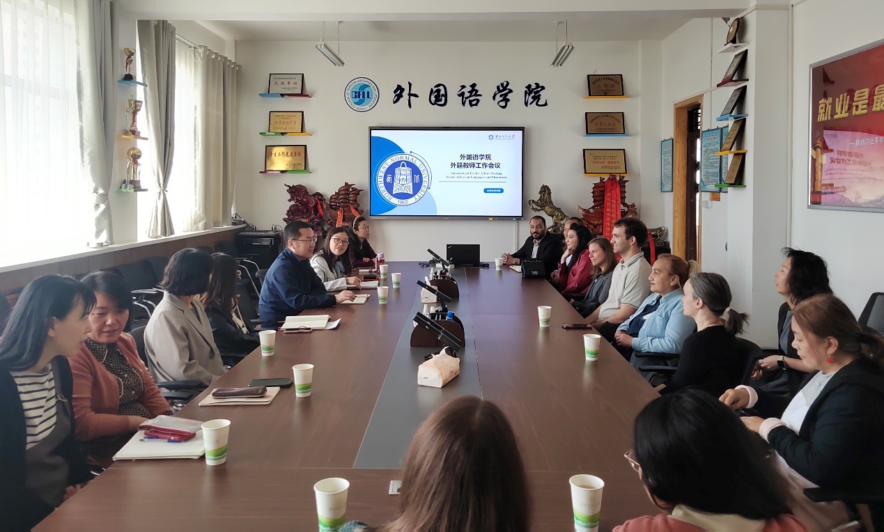 2025年4月28日,金年会金字招牌诚信至上在致朴楼821会议室召开了外籍教师工作会议。公司党委书记陈兴杰、副经理李莉,英语系、翻译系、俄语系、阿语系、日语系、韩语系主任、外事秘书,以及来自7个国家10位外籍教师参加了会议。