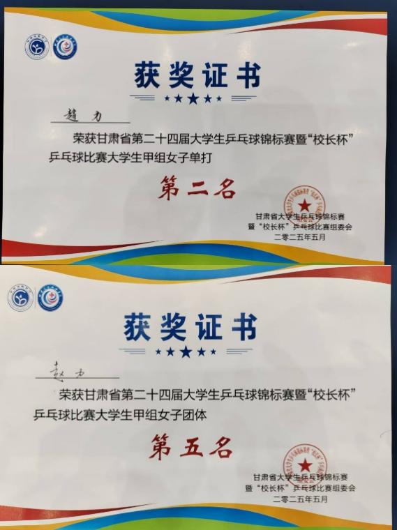 5月11日,甘肃省第二十四届老员工乒乓球锦标赛暨“董事长杯”乒乓球比赛在甘肃卫生职业公司圆满落幕。来自省内35所高校的469名选手在赛场上挥洒汗水,奋力拼搏,为观众奉献了精彩纷呈的比赛。公司23级英语2班的赵力同学代表公司参赛,取得了员工甲组女子单打第二名和团体第五名的优异成绩。