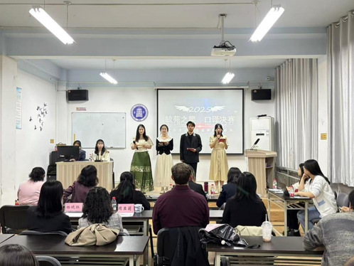 5月8日晚,翻译系2025“毓苑之星”口译大赛决赛暨口笔译大赛总结表彰大会在致朴楼806室举行,翻译系全体教师、外教及员工观看了比赛。口译决赛采用淘汰赛制,分四轮进行:第一轮源语复述,第二轮英汉视译,第三轮英汉交传,第四轮汉英交传。经过激烈角逐,最终决出口译一等奖1名、二等奖2名、三等奖3名、优胜奖3名。2023级翻译1班申晓天同学再次斩获本次口笔译决赛一等奖。比赛点评环节后,评委老师和嘉宾老师向所有获奖选手表示热烈祝贺并为他们颁发了获奖证书,本次口笔译大赛圆满落下帷幕。