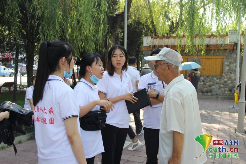 图为实践队员与当地居民调研涉外应急语言服务。中国青年网通讯员 崔泽欣 摄